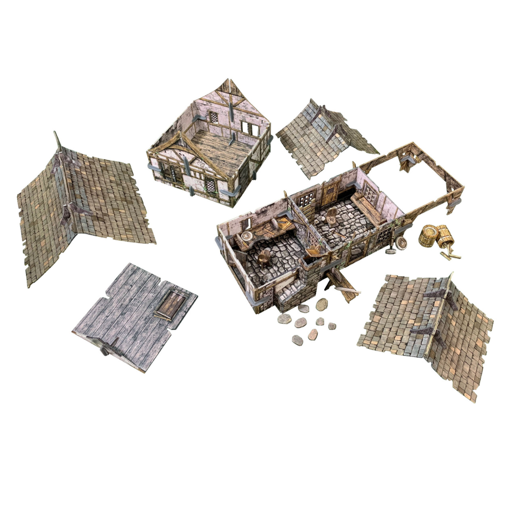 This box contains everything you need to build a large multi-level house, suitable for many 28-35mm fantasy and historical games. The interior is fully detailed and the roof and upper floor are removable. The set comes complete with a forge and other furniture to accessorise your gaming table. Many of the pieces are modular and can be assembled in different combinations or mixed and matched with the rest of the range.