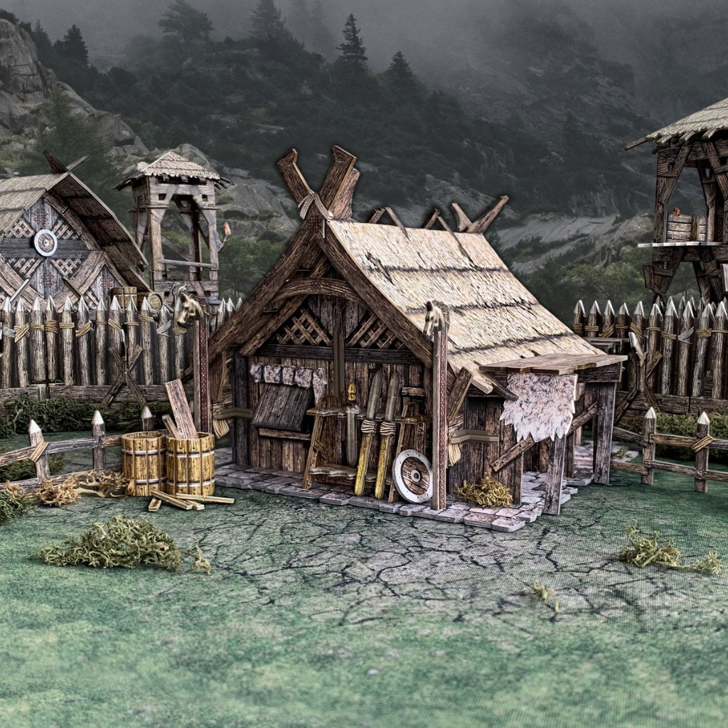 This box contains everything you need to build a small wooden house, suitable for many 28-35mm fantasy and historical games. The interior is fully detailed and the roof is removable. The set comes complete with scatter terrain to accessorise your table. Many of the pieces are modular and can be assembled in different combinations or mixed and matched with the rest of the range.